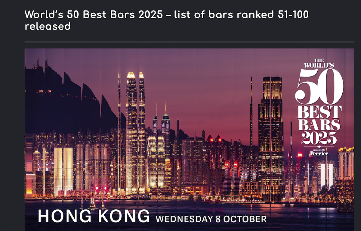 Kong Kong’s Bar Leone Ranked as World’s Best Bar 2025 October 13th, 2025 The World’s 50 Best Bars 2025, sponsored by Perrier, were announced …