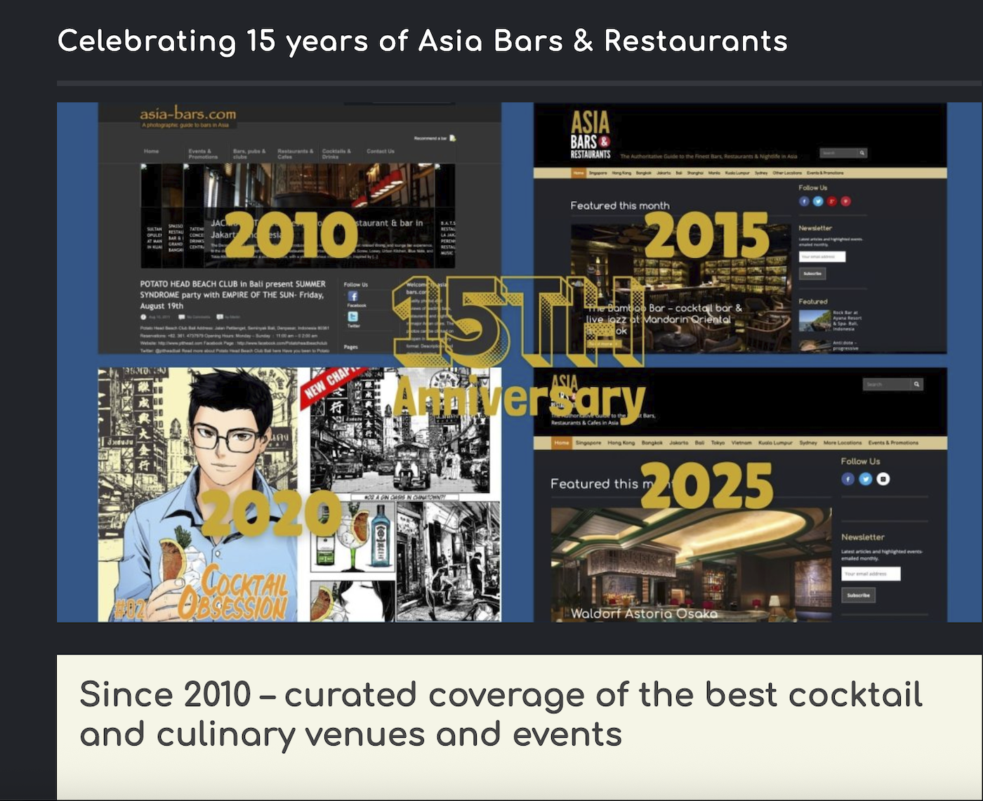 Perennially at the forefront of the cocktail scene in Asia, Singapore is home to some of the top-ranked bars in the world. Local drinkers are spoilt for choice in Singapore with the variety of cocktail bars ranging from the polished service and exemplary drinks at sophisticated bars within luxury hotels; the hidden “speakeasy” inspired bars; and progressive bars exploring local ingredients and eco-friendly bar practices.