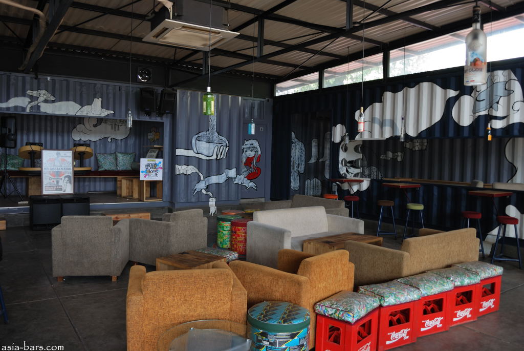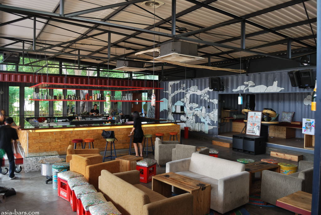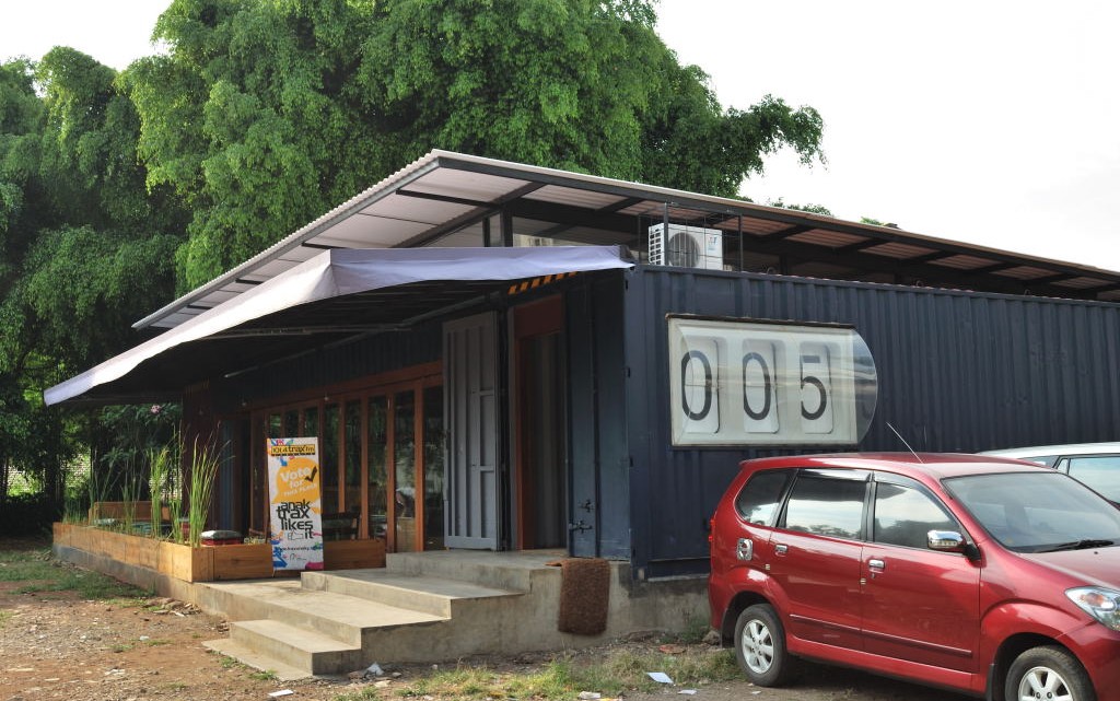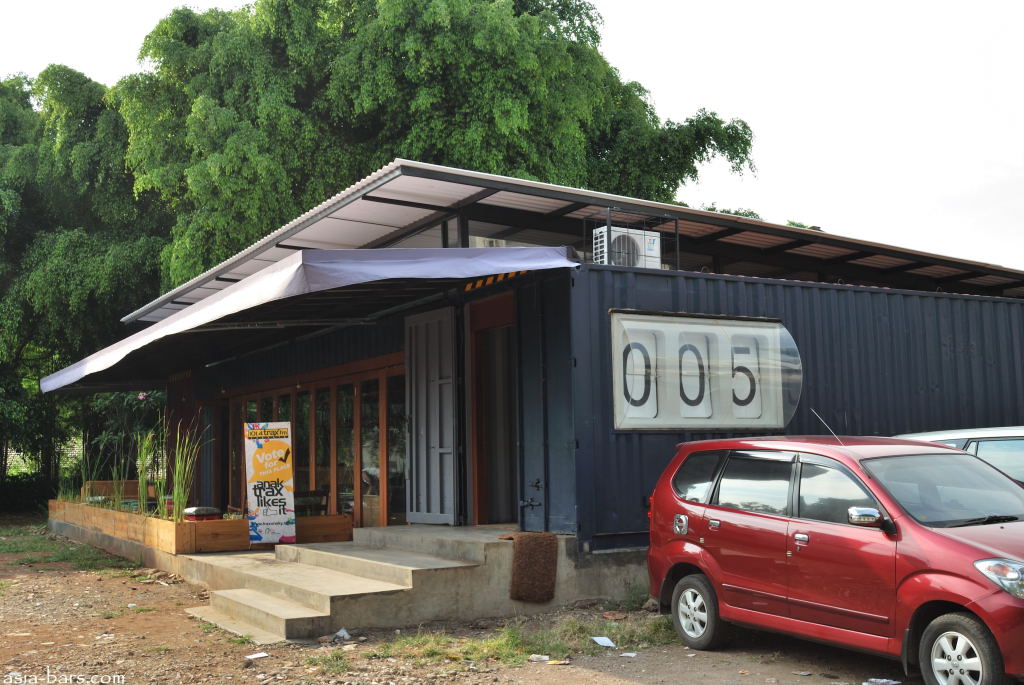 Eco bar is located in disused carpark in Kemang, the building was made from re-cycled shipping containers.