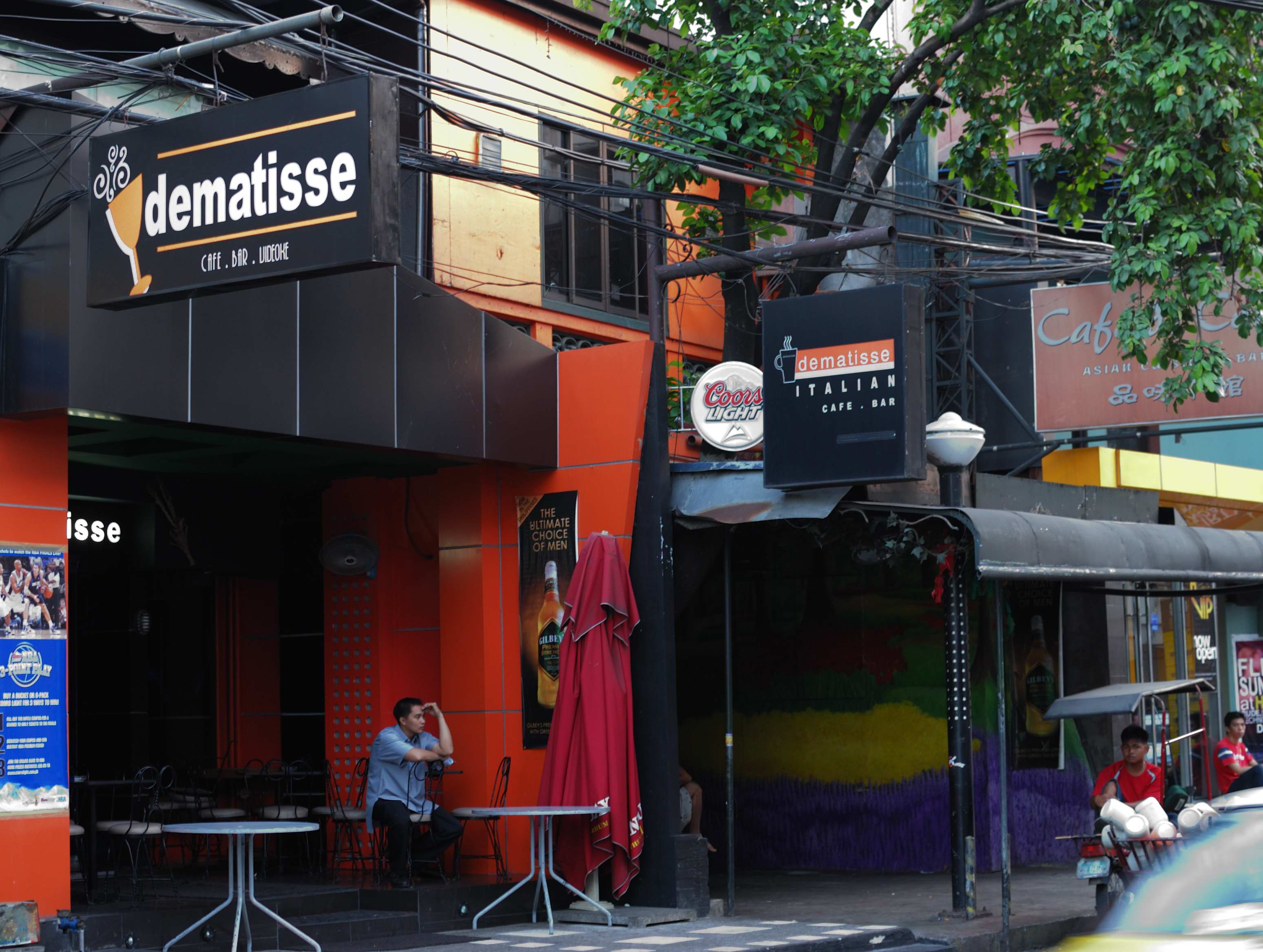Dematisse Cafe.Bar.Lounge- Malate , Manila August 12th, 2010 Italian cafe with bar and lounge. Dematisse Cafe- Manila Address: 584 Remedios St. Malate Manila Tel: +63.2.400-6415 Share article: Google Plus 0 Share 3 Tweet 0