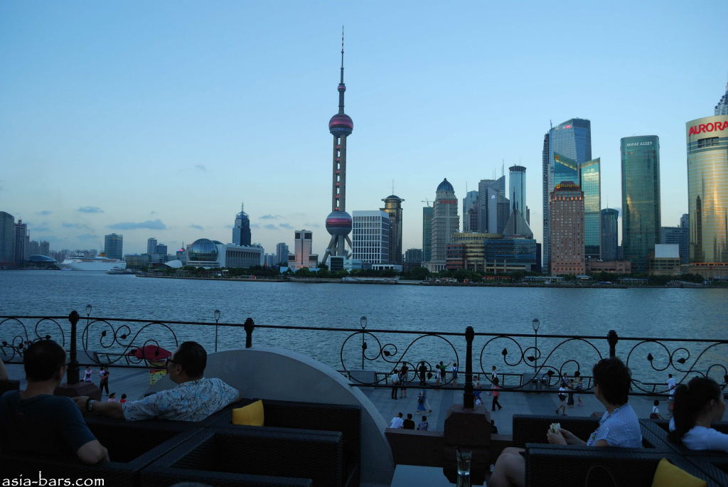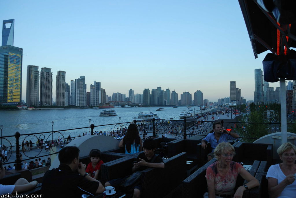 There is cafe and bar on the first floor, and up the old spiral staircase to the roof top bar with 360 degree panoramic views down the Huangpu River and The Bund, and across to the Pudong skyline. Casual, relaxed ambience – but drinks prices are in line with the views!