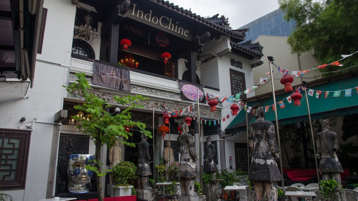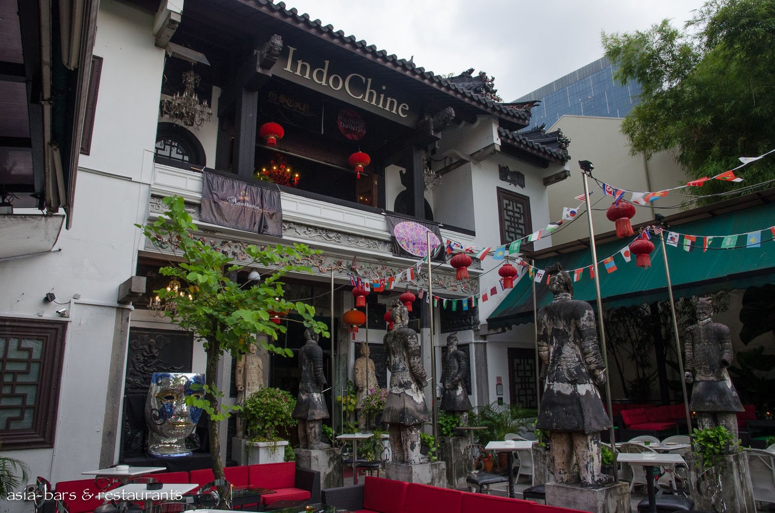 The Forbidden City comprises an outdoor bar area- The Bamboo Bar– with comfortable seating and tables for “chilled out” drinks in a relaxing ambience. Then on the ground floor of Forbidden City is Bar CoCoon, and upstairs on the first floor is the restaurant Madame Butterfly . The design and interiors of Forbidden City are themed around an impressive collection of Chinese artworks, antique furniture and numerous artifacts. Numerous lifesize replicas of the famous Terracotta Warriors provide an imposing presence overlooking the patrons inside bar CoCoon and also outside the main building entrance. Another feature of all IndoChine outlets are the stunning chandeliers.