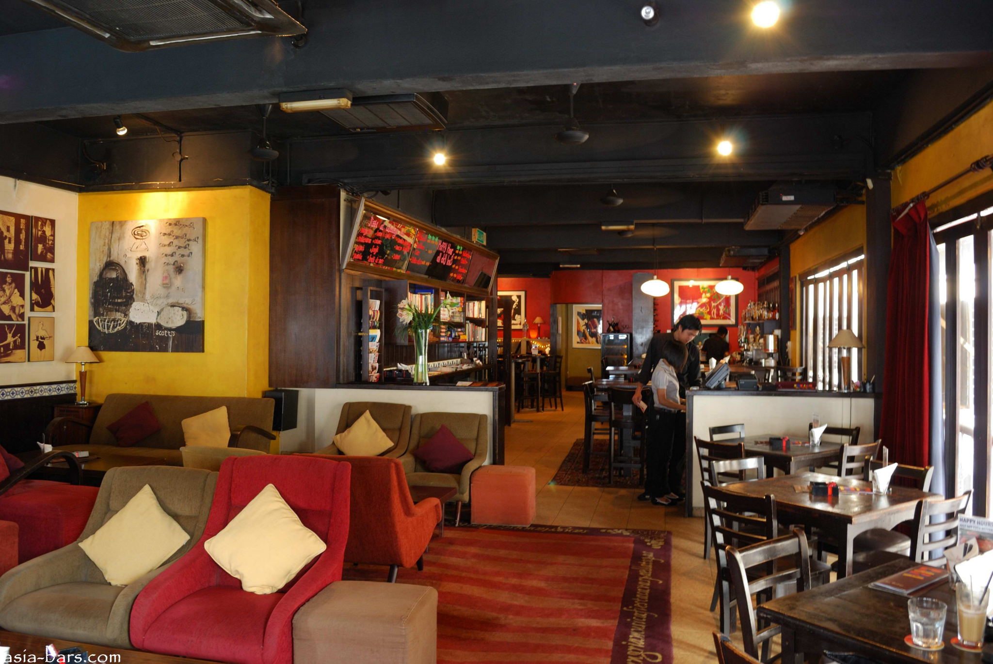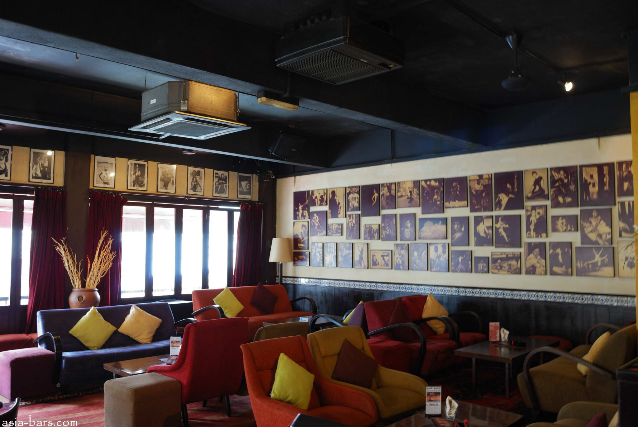 The Lounge has a relaxed, calm ambience, with soft sofas, some tables and background jazz music.