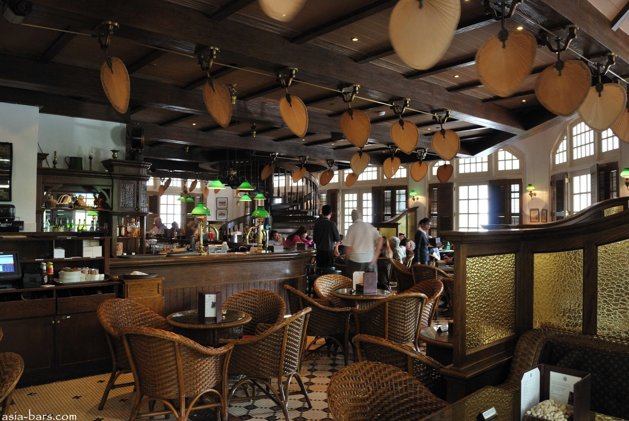The Long Bar is a two storey bar located in the hotel arcade- and has become famous as the home of the iconic “Singapore Sling” cocktail- which was created in 1915 by the Chinese bartender Ngiam Tong Boon. The pink cocktail has retained its popularity to this day – and is a “must have” choice for all visitors to the Long Bar. Another tradition of the Long Bar that has been maintained are the wooden boxes of unshelled peanuts on every table and the bars. The protocol is to drop the shells onto the floor.