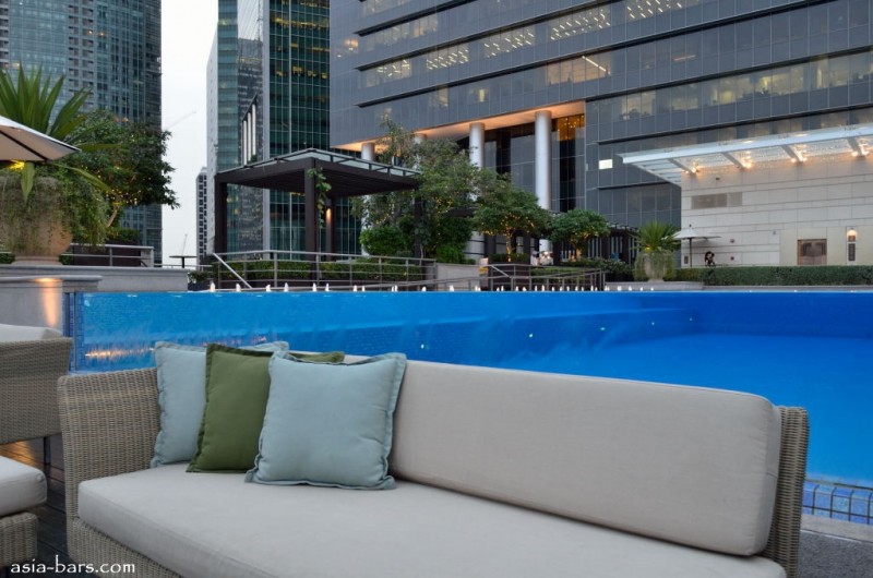The Lantern Bar is one of the newest- and best- rooftop bars in Singapore. Conceived by the architect as the highlight of The Fullerton Bay Hotel– the pool and bar certainly do not disappoint with specatacular panoramic views over the Singapore CBD skyline and Marina Bay precint. The luxurious boutique hotel opened in July 2010 – and is adjacent to the historic Clifford Pier on the Marina Bay waterfront in central Singapore. The bar takes it’s name from the original Chinese description for Clifford Pier- “red lantern pier”- the pier was the landing point for immigrants (mostly ethnic Chinese) arriving in Singapore in the 19th and early 20th centuries.