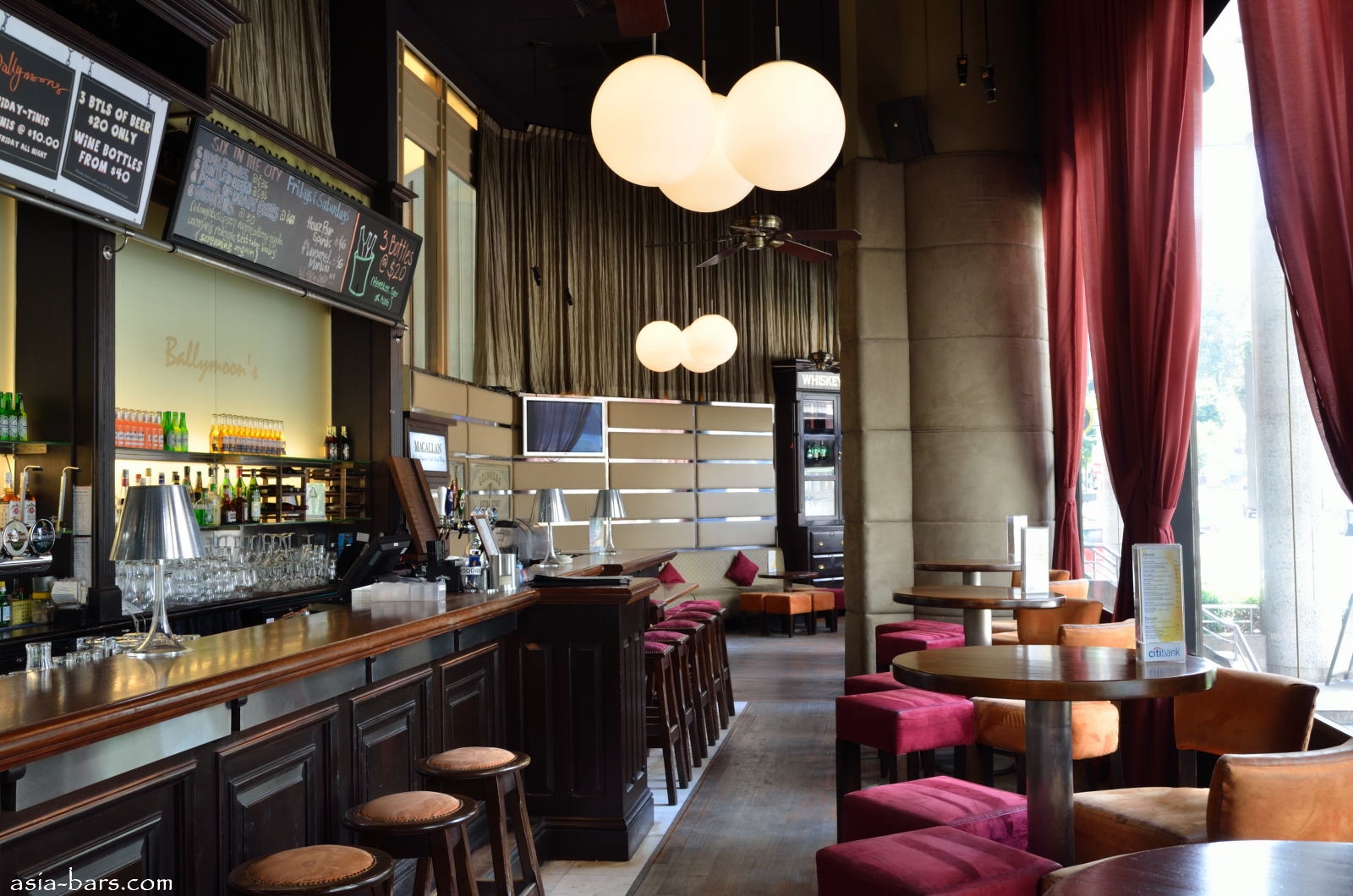 As a spirits bar, the drinks emphasis is on offering a large range of signature cocktails, single malt whiskies and premium spirits. also available are champagnes and wines, and fresh international premium draft and bottled beers. The signature cocktails include Chocolate or Lychee Martinis, and seasonal fresh fruit martinis such as mangosteen, starfruit and strawberry. Ballymoon’s weekly promotion- “Friday – tini” – has flavored martinis at S$10 nett, every Friday all night. A nightly happy hour from 5pm to 7:30pm , plus other promotions on drinks are advertised on the menu boards behind the bar.