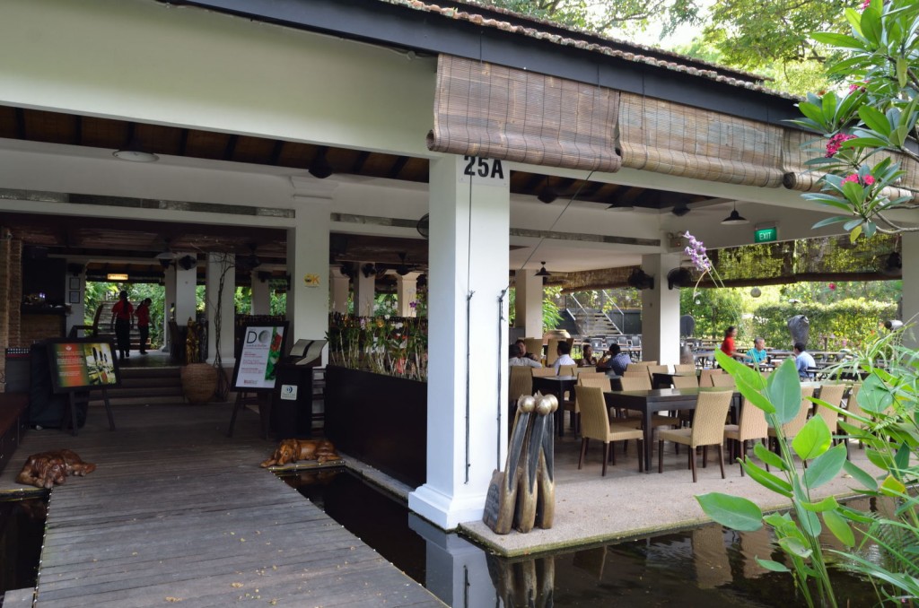 Situated in the historic Dempsey Hills area of Singapore, the REDDOT Brewhouse occupies a restored 1860’s military barracks building, set amid lush tropical foliage. The expansive space provides both for indoor dining and bar, and outdoor tables on two levels of garden terraces. Accessed from the street level carpark via steps set up into the hill- the entrance lobby provides an open view through full height glass walls of the working micro brewery. The main building itself is open on all sides to the outdoor garden areas, but provides welcome relief from the tropical sunshine during daylight hours.