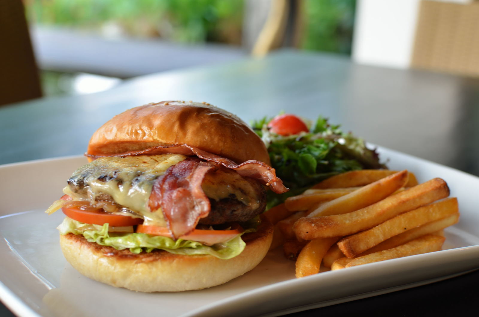 And one of the most popular choices is the “RedDot Beef Burger” – fresh ground beef, crisp bacon, cheddar cheese, caramelized onions, tomatoes, lettuce and special sauce and served with french fries.