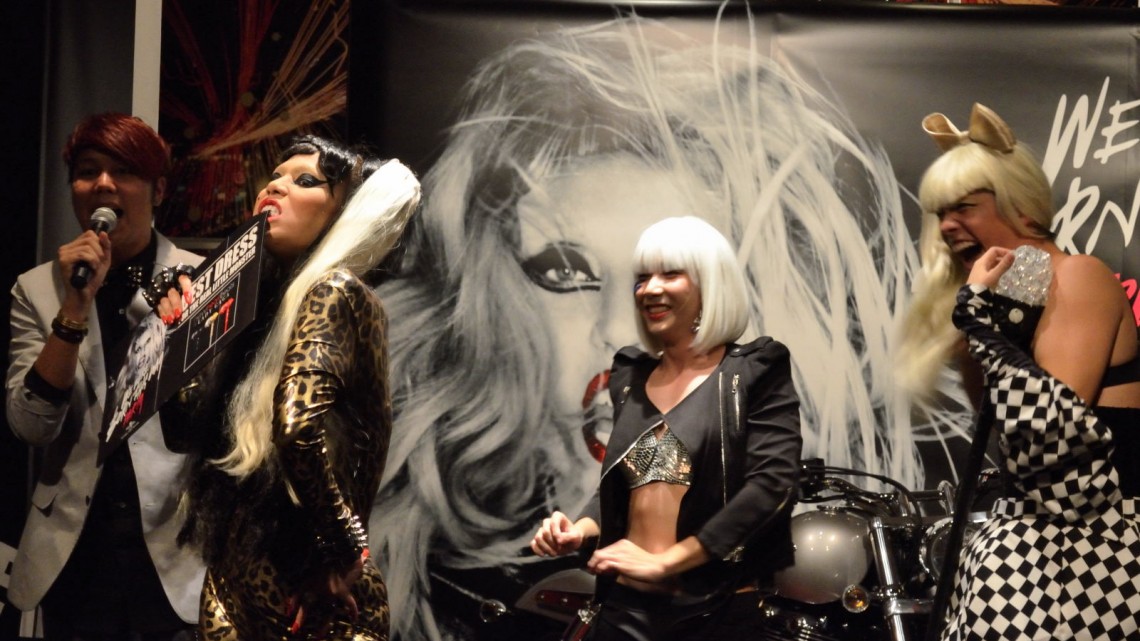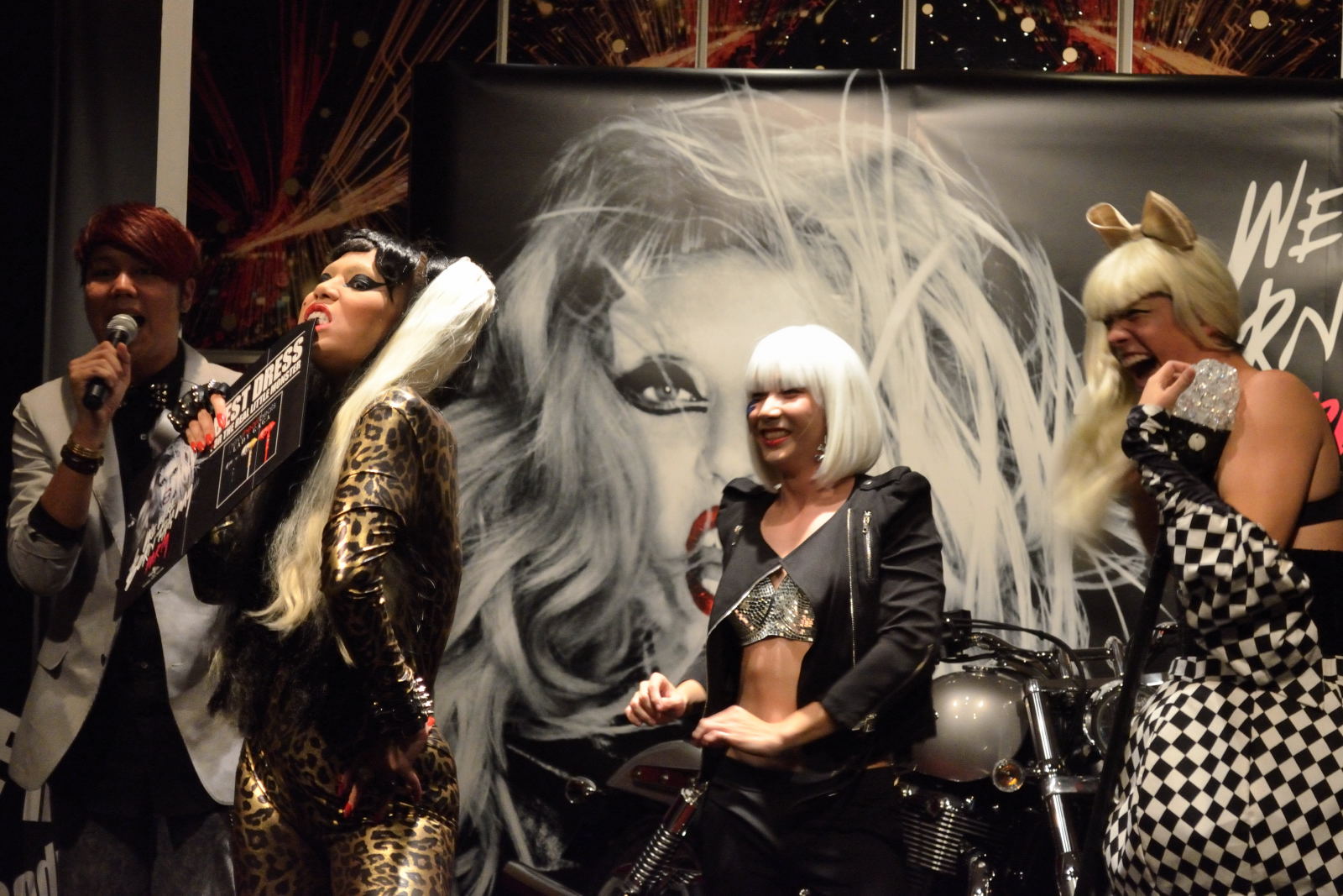 Next up were the local Little Monsters, competing for the “BEST DRESSED” Prize. After some dramatic LADY GAGA impersonations, with some outrageous costumes and makeup, three finalists were selected- and the ultimate winner proved to be worthy of the title of #1 Little Monster for the night.