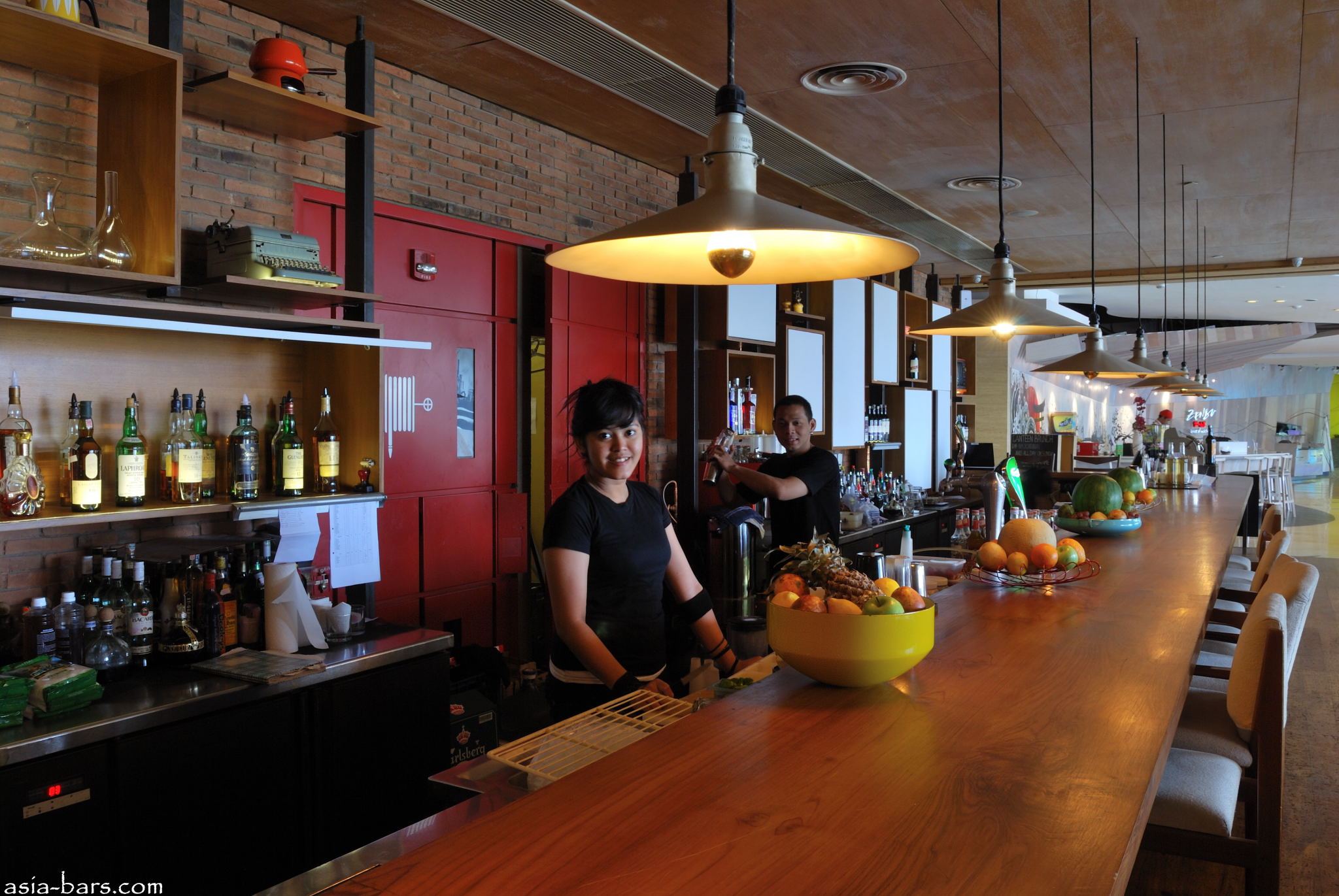 Canteen opened in the new extension of the luxury Plaza Indonesia in central Jakarta in late 2009, and like it’s sister establishment- Canteen at Pacific Place, adjoins directly to the affiliated Ak’sara bookstore. Canteen occupies a large corner space on the 5th level of the mall, with a wide open entrance facing onto the mall, plus a wall of full height, floor to ceiling glass, with views out over the Jakarta skyline. The room during daytime is bathed in natural light giving the space the bright, airy atmosphere of a relaxed, casual cafe. At night, with dimmed lighting, the room takes on a more “warm” feeling with an inviting long timber cocktail bar for evening drinks.
