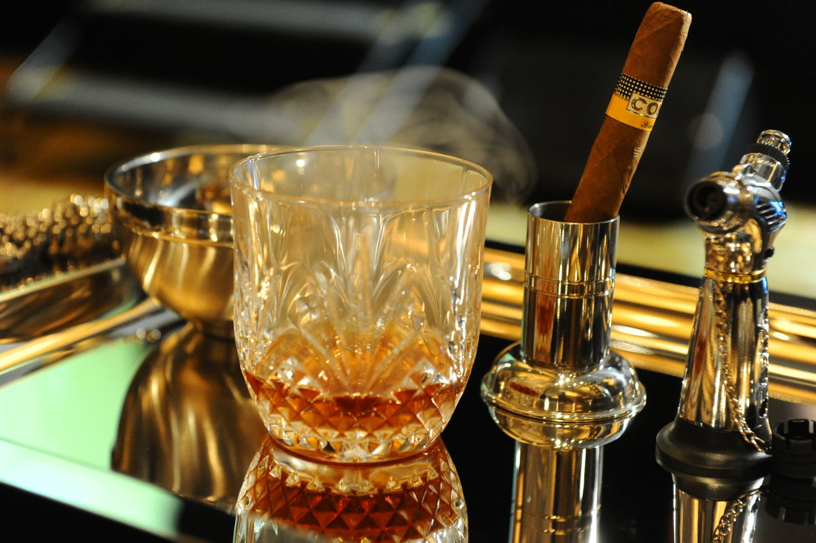 The ingredients were stirred with honey in an old-fashioned glass, and in true theatrical form, finished with a cloud of Cohiba Siglo No. 4 smoke.