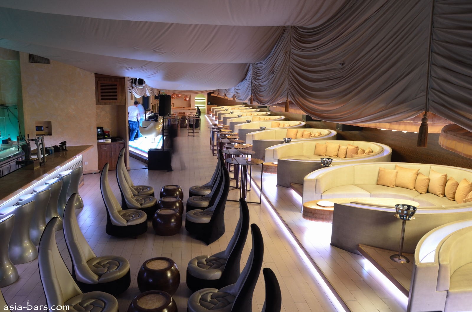 When it opened in 2008, the visually stunning and luxurious design of the Sultan Lounge at the Mandarin Oriental set a new standard for sophisticated lounges and clubs in Kuala Lumpur. Set in a basement space of the hotel, the design for Sultan Lounge was created by renowned New York based firm Dupuox Design- whose other notable club design projects include the Buddha Bar in New York, Cocoon in London and Nikki Beach in Miami. Themed around the concept of the mystique of the Arabian nights, with flowing fabric from the ceilings evoking the feeling of an opulent desert tent. Abundant use of gold finishings- including the spectacular gold chromed “cloud shaped” DJ station- create the atmosphere of luxury and extravagance.