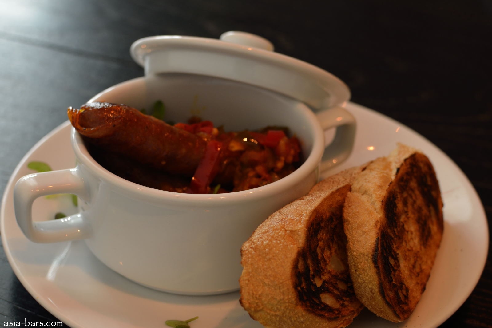 Merguez Sausage in Soffrito – Moroccan style lamb sausage stewed with bell peppers, onions and paprika.