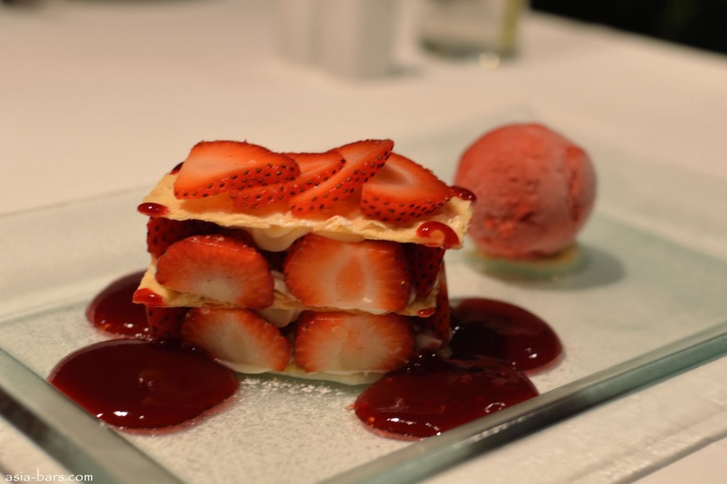 Strawberries Millefeuille with Mascarpone cream and strawberry icecream