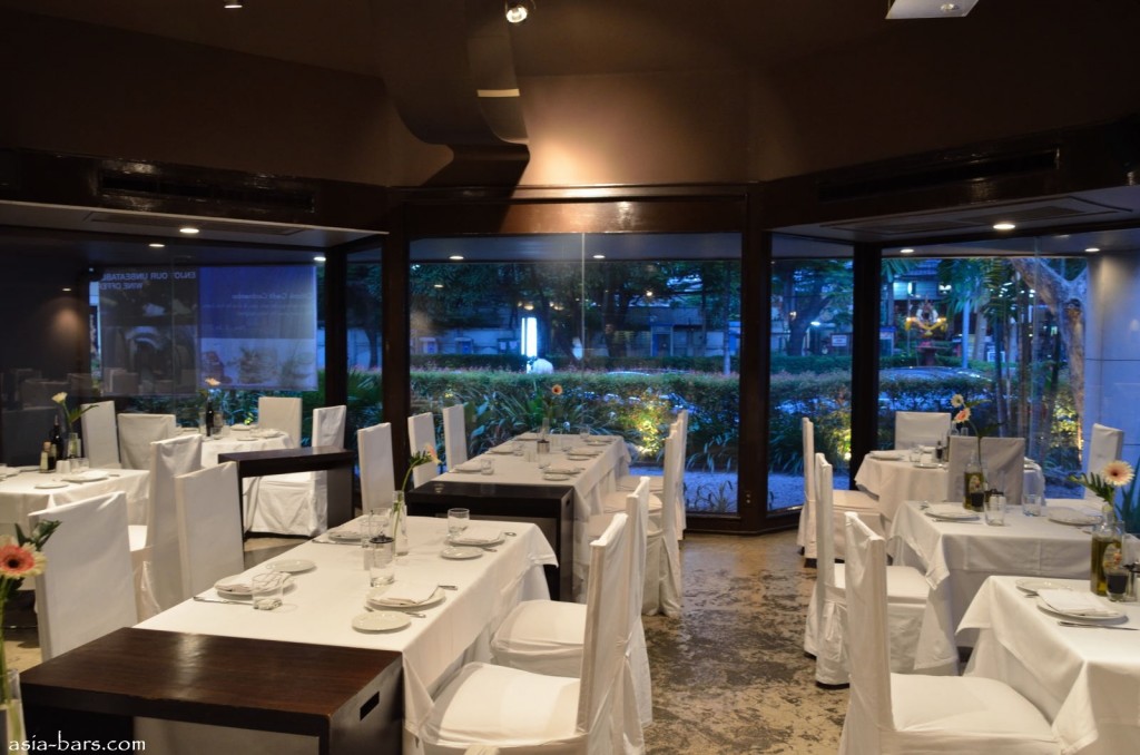 Giusto Restaurant occupies a freestanding modern building on a large corner site in the central Sukhumvit area. The low-rise building is entered from a covered passageway which now includes some outdoor seating for smokers. Past the reception area, the bar is located in the centre of the entry area- with two private dining areas on the right hand side. Opposite the bar area is the passageway that leads to the “Glass Wine Bar” which is located within a totally separate space at the rear of the building. (At the time of writing, the Glass Wine Bar was temporarily closed for renovations).
