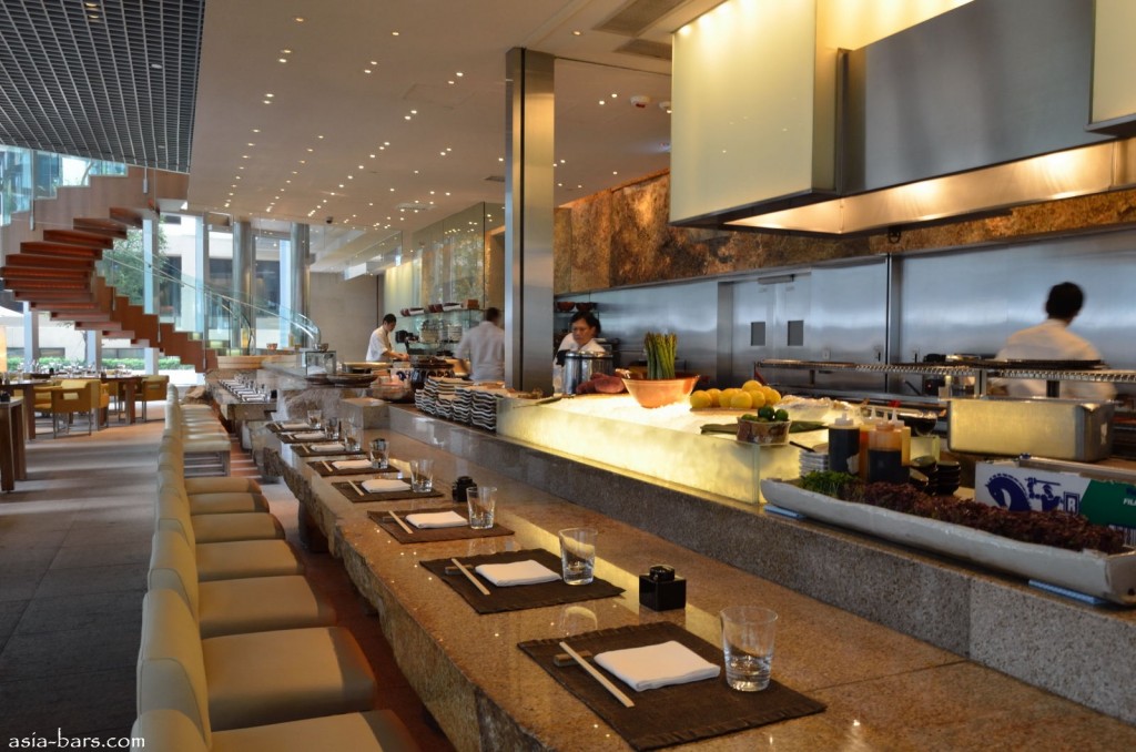 The Sushi Counter– serves fresh selections of sashimi and sushi- zuma nigiri zushi– zuma-style nigiri, toto and truffle, hotate and pomelo, tako and yuzu unagi and plum, wagyu beef and caviar; dynamite spider roll– softshell crab, chilli mayonnaise, cucmber and wasabi tobiko sauce.