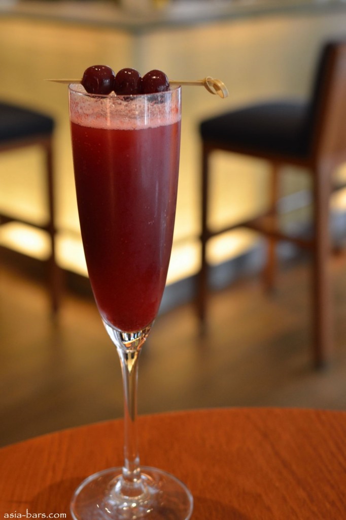 Cherry Blossom Bellini- Black cherry puree stirred with almond syrup and plum sake, topped with prosecco