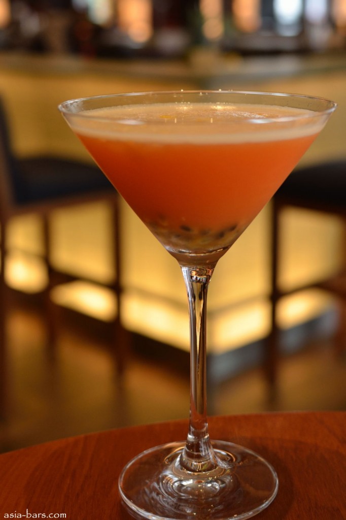 Rubabu- signature cocktail- Rhubarb infused sake, shaken with 42 Below Vodka and fresh passion fruit – served as a martini