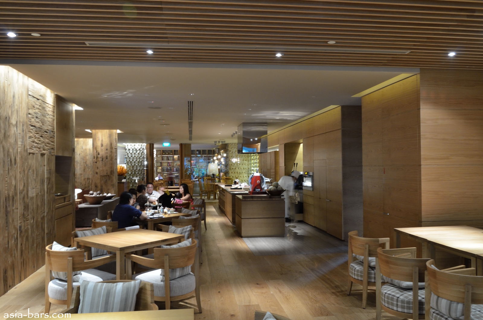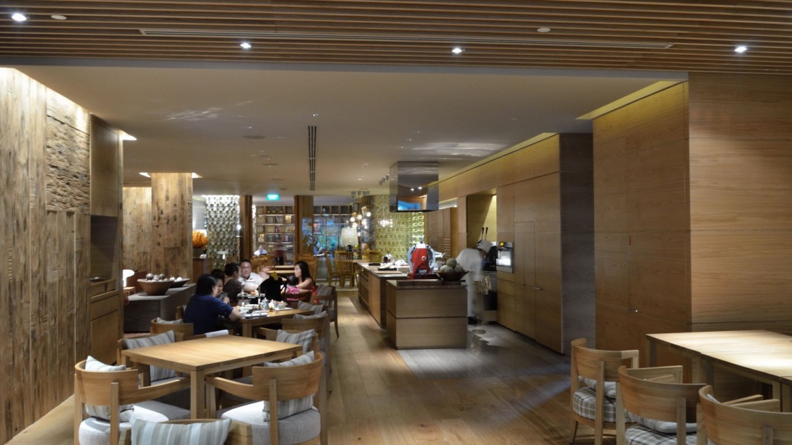 Recently opened at the Grand Hyatt Singapore, 10 SCOTTS is a uniquely conceived dining and lounge space, created by the pre-eminent Japanese design firm Super Potato. The long rectangular space on the lobby level of the hotel has been created with a theme of a residential style collection of rooms that provide a series of spaces for comfortable communication between groups of people, whether they are dining at tables, or just relaxing in the lounge areas. The interior design features the trademark elements of Takashi Sugimoto, the renowned interior designer and founder of Super Potato, with the combination of natural materials in unexpected ways to create a simple yet strong style that is intrinsically Japanese. Extensive use of natural materials provide a richly textured and layered design- raw wooden planks arranged horizontally and vertically on the walls contrast with the smooth polished timber flooring in the dining areas and carpeted lounge spaces. Super Potato have also designed the other dining and bar spaces within the Grand Hyatt Singapore- commencing in 1998 with MEZZA9 and BRIX, and more recently in 2004 with STRAITS KITCHEN.