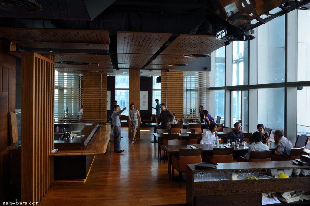 At the heart of the craft brewing operation are the two large copper kettles, prominently displayed in the centre of the space, where the brewing process is carried out in full view of the patrons. Entering LEVEL 33 from the dedicated express elevator, the entrance passageway is lined on one side with a row of large stainless steel storage tanks- highlighting the functionality of the space. At the end of the passage the main dining and drinking spaces unfold, with a large , bright and airy space enclosed by floor to ceiling glass walls on all three sides. The central bar area divides the space – with slightly raised dining sections – the Ploughmans Dining ( named after the “Ploughmans table”) to one side, and the Main Dining zone on the south side of the bar. At the far end of the north side are the private dining rooms. And surrounding the interior zone is an open air terrace, with both lounge seating and high tables and chairs that provide panoramic views of the city skyline and Marina Bay areas. The contemporary design of the interior utilises a palette of warm earth tones and natural materials – rich timber flooring, wall panelling and suspended ceilings in the dining areas; and a concrete floor and blackened “industrial” style ceiling in the bar section. During daylight hours, the soaring full height glass bathes the interiors with natural light, and in the evenings the lights of the adjacent city skyline evoke a more serene, sensual atmosphere.