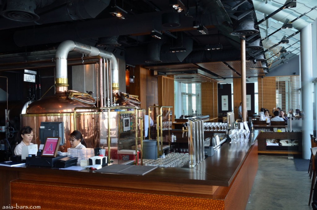 Establishing a working craft brewery on the top floor of an office tower in Singapore’s new financial district was the inspirational challenge undertaken by the team behind LEVEL 33. Since the opening in November 2010, their vision has been vindicated by the many accolades, and the continued popularity enjoyed by LEVEL 33. The restaurant and bar at LEVEL 33 offer a discerning, upmarket beer drinking community with an opportunity to appreciate premium quality , hand crafted beers, in a sophisticated yet casual space high above the Marina Bay precinct. Reportedly the world’s highest operating craft brewery, the combination of the freshly brewed beers and innovative cuisine, together with spectacular views over the Singapore skyline, make for a memorable dining and drinking experience.