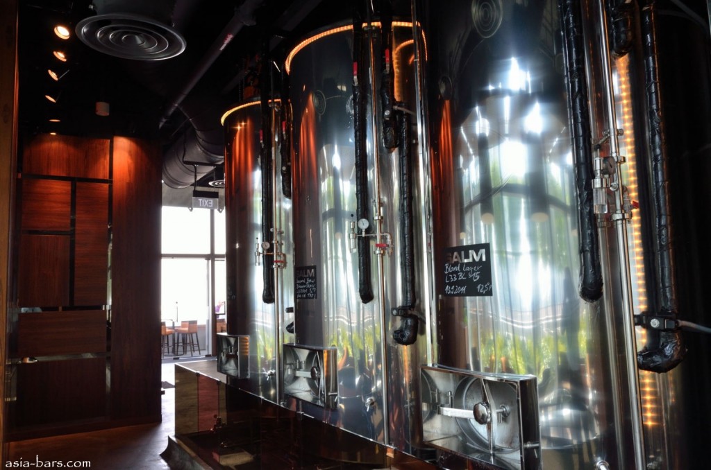 Large stainless steel tanks line the entrance passage– manufactured in Germany by specialist brewing equipment company SALM & Co Gmbh