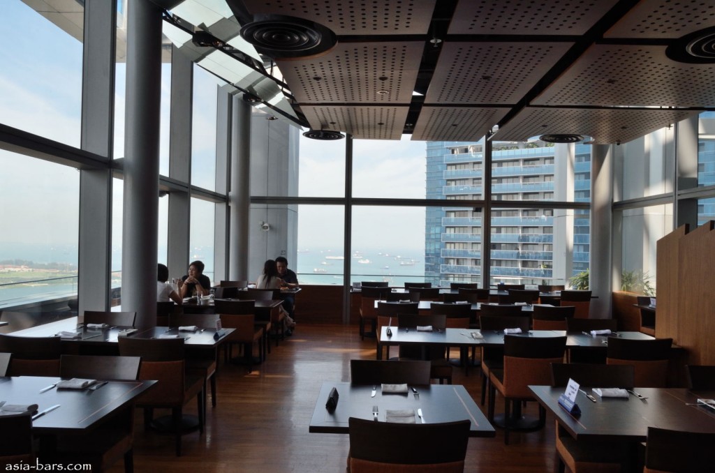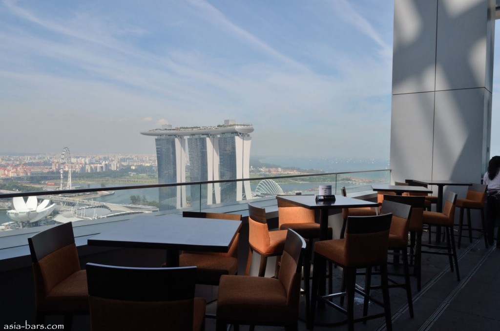 Outdoor terrace seating with panoramic views over Marina Bay and beyond