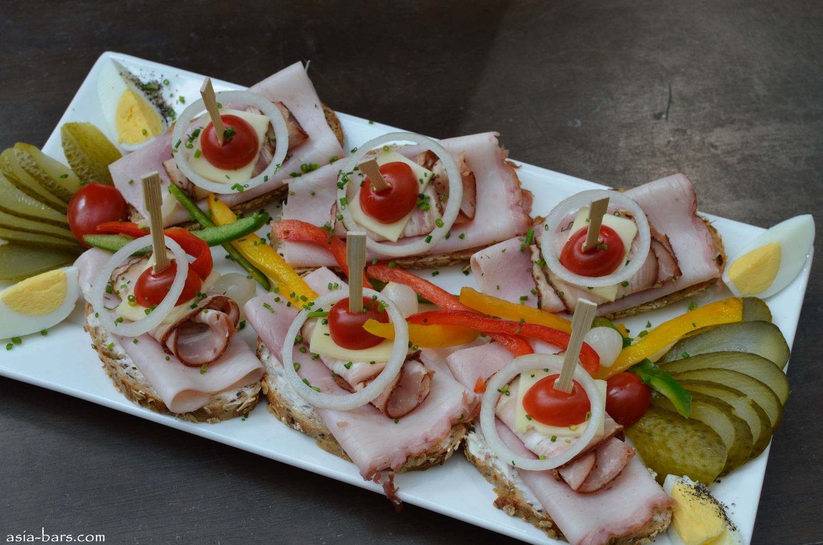 Brotzeit® Brot / Best of Brotzeit® – Leg of ham, belly bacon, emmenthaler cheese, onions, mixed bell peppers, boiled eggs, pickles, cocktail onions and tomatoes served on multi grain bread