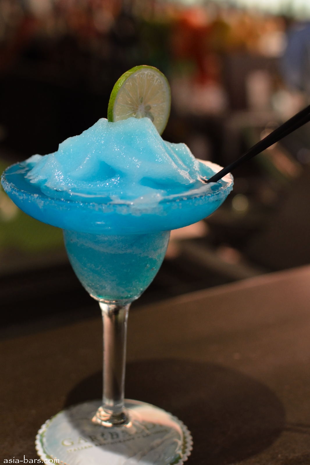 BLUE FROZEN MARGARITA– Blue caracao, tequila, lemon, lime and salt