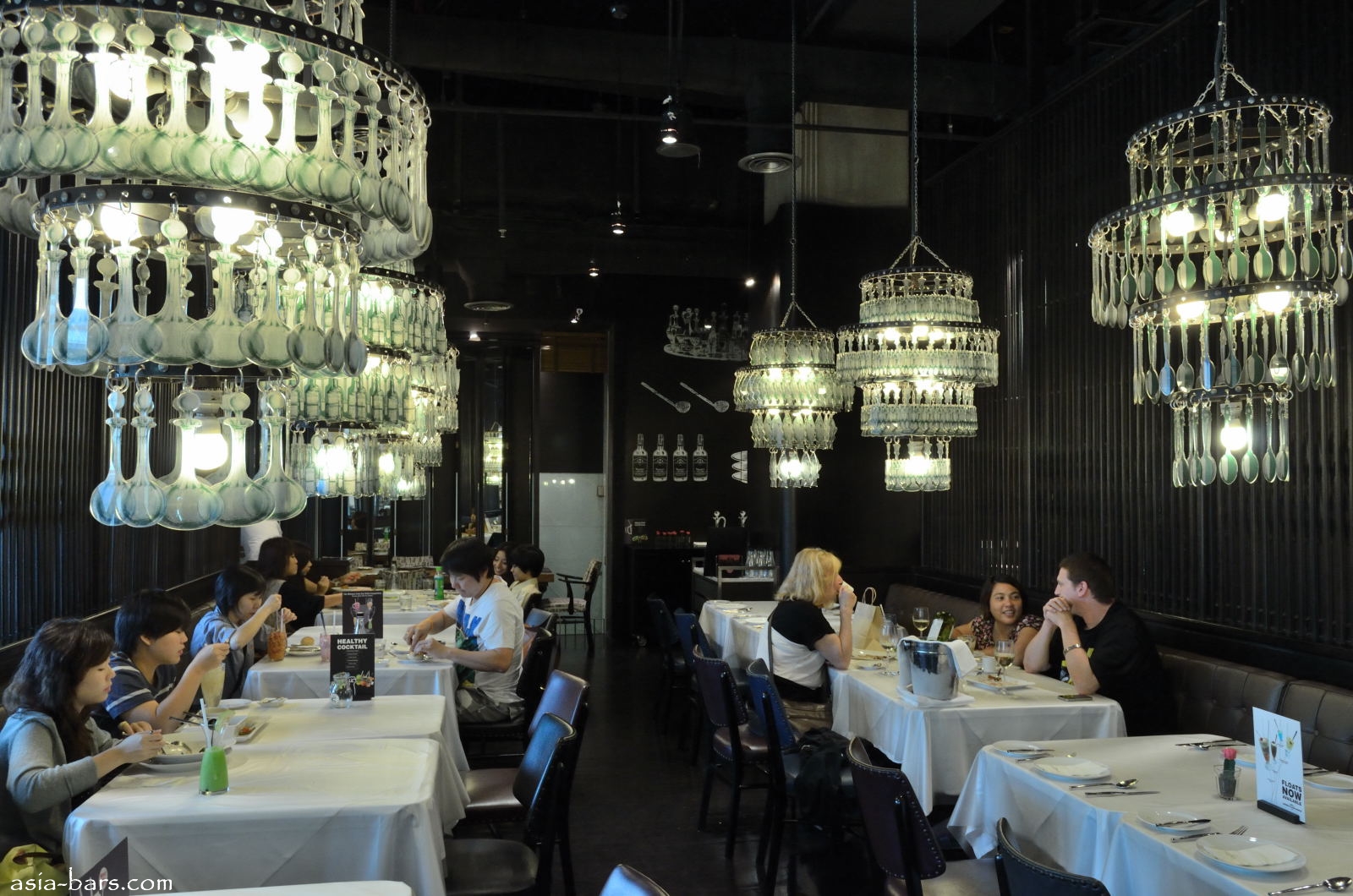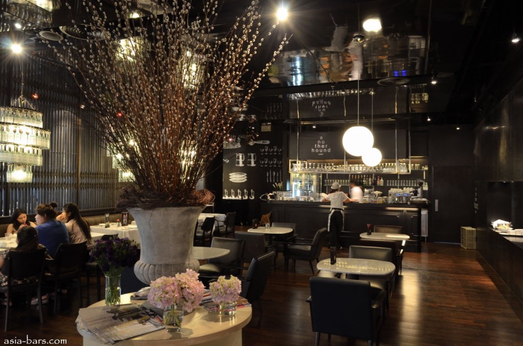 Another Hound Cafe is an elegant, sophisticated cafe serving an innovative menu combining Thai and Italian cuisines. Located within the vast Siam Paragon Mall , in the heart of Bangkok’s downtown shopping district, the mall is probably the most prestigious luxury retail and lifestyle mall in Bangkok. A sibling of the Greyhound fashion brand and lifestyle cafes, Another Hound Cafe was launched with the opening of Siam Paragon in 2005. Greyhound is one of the enduring home grown fashion and lifestyle brands of Thailand, and has garnered an acclaimed status both within Thailand and amongst a discerning international clientele. Branching out from their roots as a fashion lifestyle brand, the first Greyhound Cafe was launched in 1997 at the Emporium Mall, and following its popularity, six further Greyhound Cafes have been subsequently established within other leading shopping and lifestyle malls in Bangkok, and the first international branch in recent months was opened at the IFC Mall in Hong Kong. In creating Another Hound Cafe, the Greyhound founders have taken their casual cafe dining concept to another level- both in terms of an innovative cuisine, and an interior design of sophisticated elegance and style.