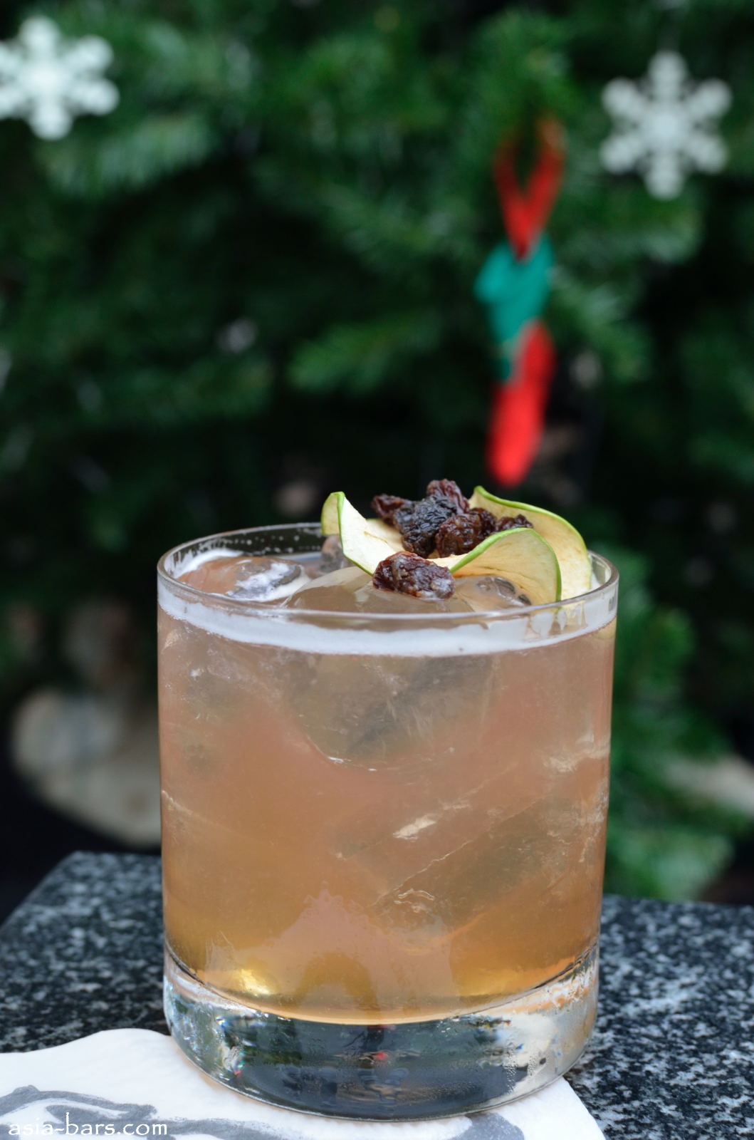 Jive Turkey– Jim Beam, cinnamon liqueur, doux cider- served with dehydrated apple & raisin