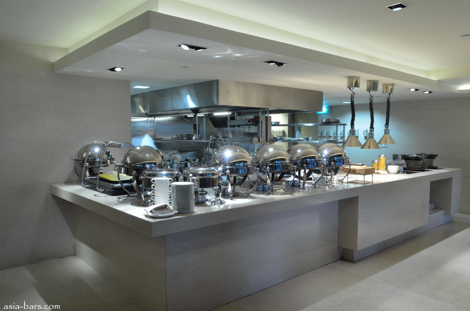 A section of the show kitchen with live cooking stations at Cinnamon