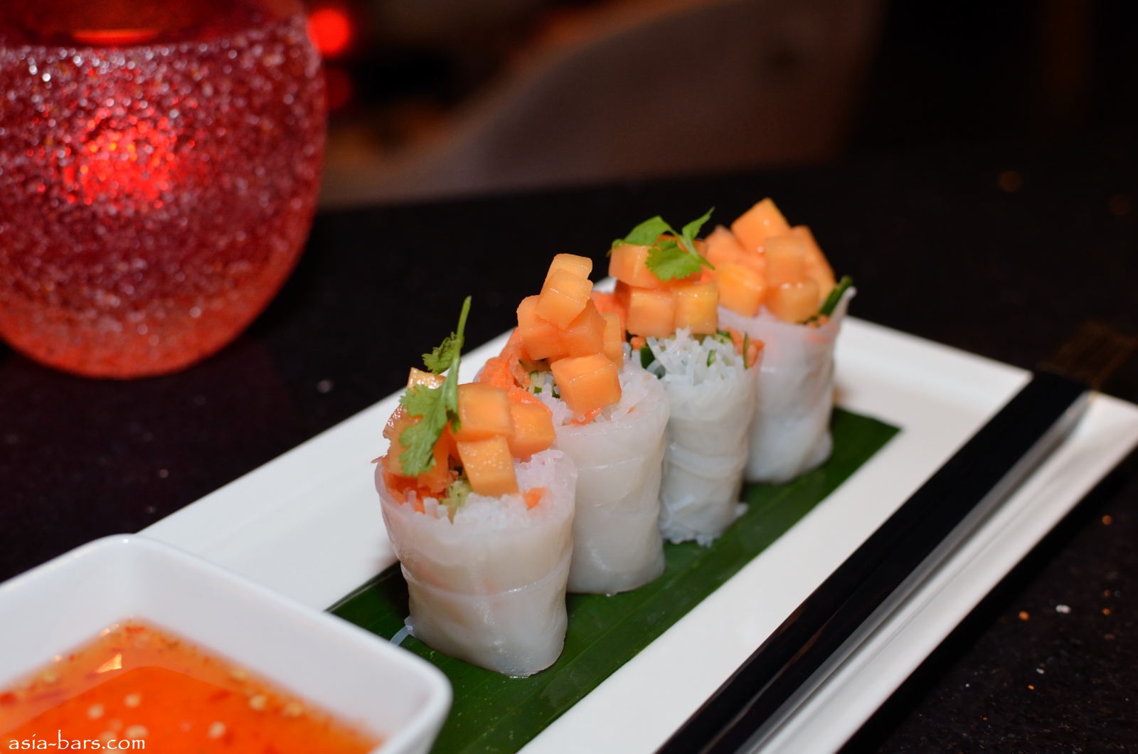 VIETNAMESE ROLL– rice paper with prawns, papaya,vermicelli, coriander