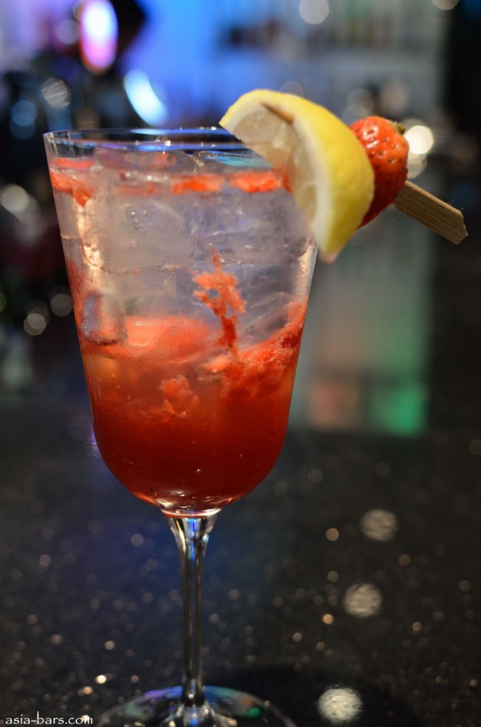 “Jakarta Morning”- a “Virgin MO-lixir” (mocktail)– Fresh strawberries, lavender, fresh lemon and soda