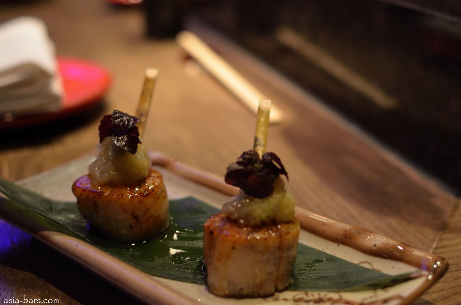 Hotate– Grilled scallops with sweet soy sauce and apple wasabi relish