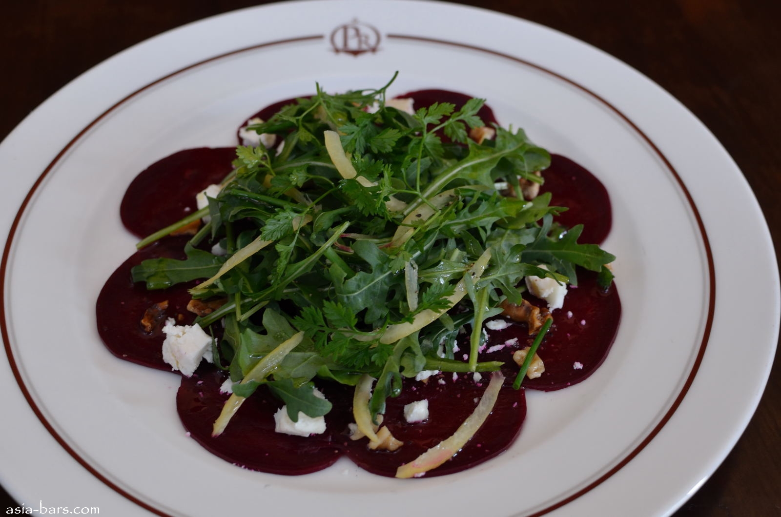 Beetroot Carpaccio– Goat’s cheese, toasted walnuts, preserved lemon and wild rocket