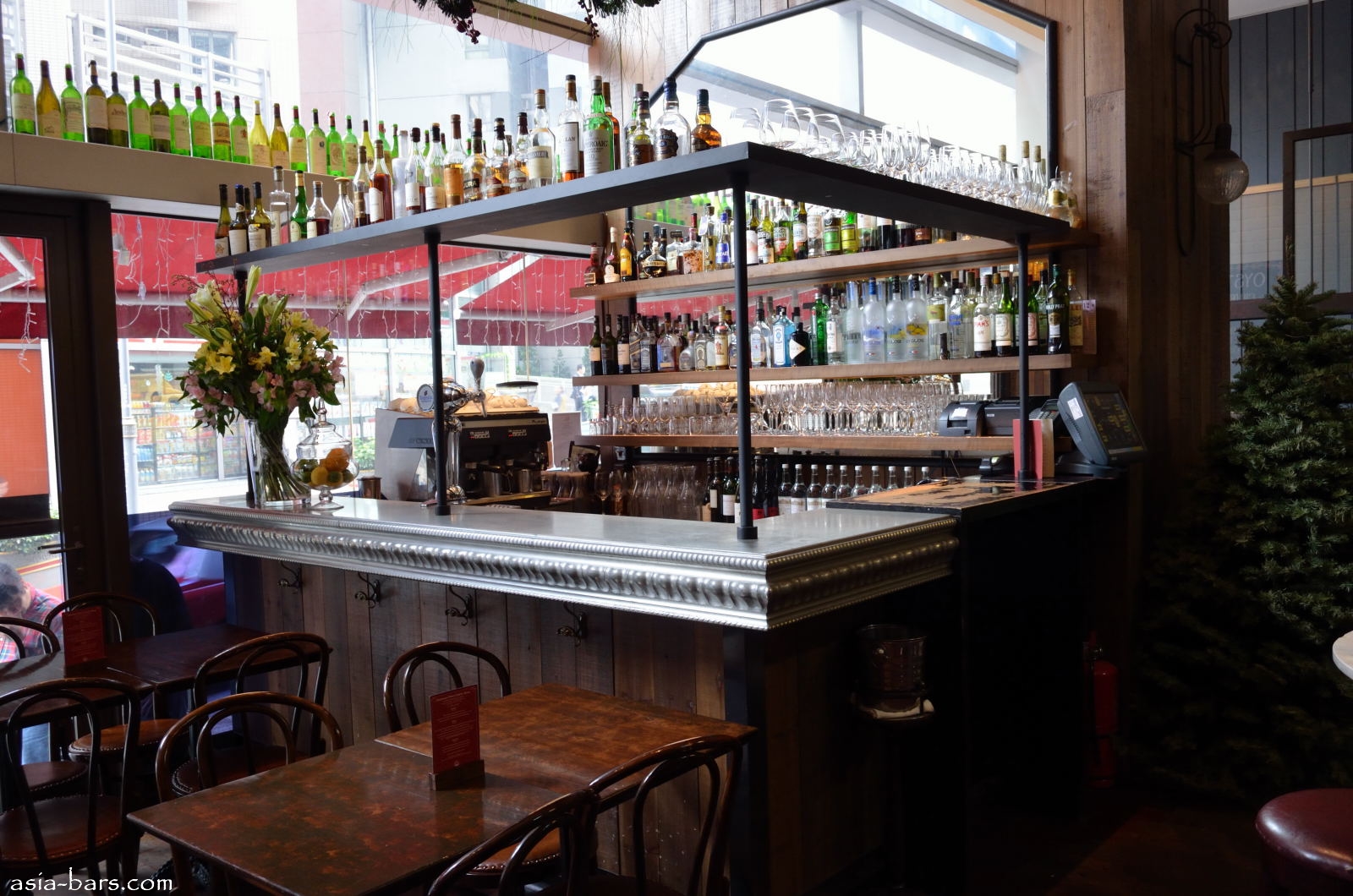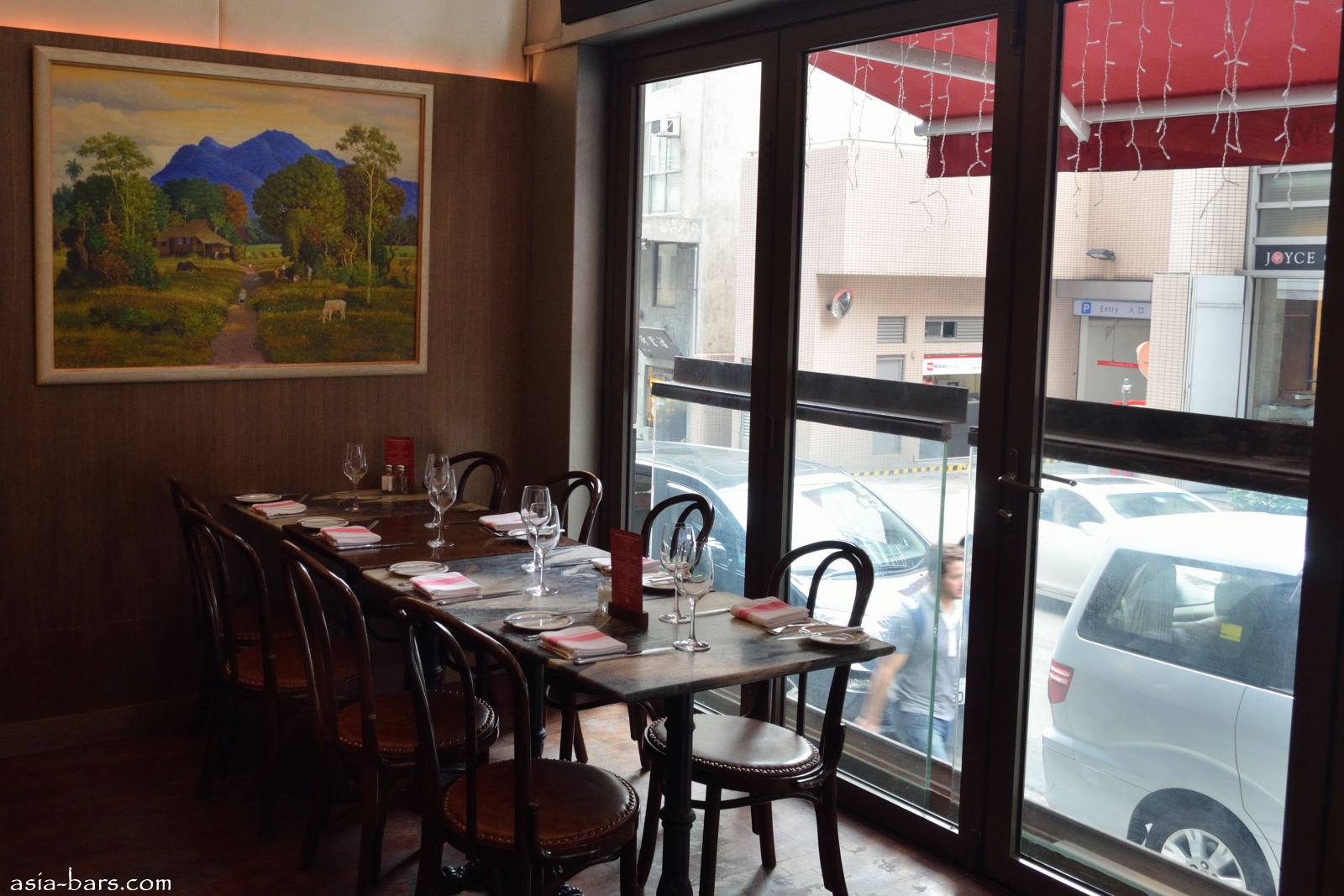 Window front tables overlooking Hollywood Road