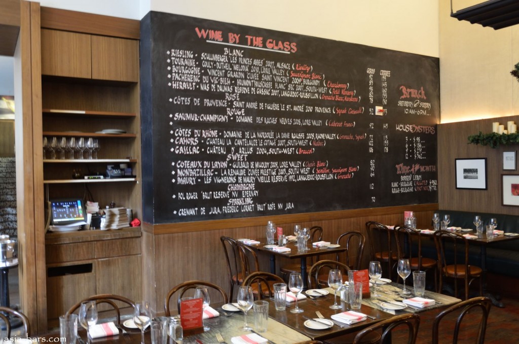 The dining concept of French-European hearty bistro food is authentically executed by Head Chef Jorge da Silva and his team in the kitchen. The menu features selections from the Raw Seafood Counter– varieties of fresh oysters, crustacea and caviar. The main dining menu commences with Soups & Starters– highlights include Five Onion Soup Gratine; Tuna Tartare; and Foie Gras Ballotine. From the Salads selections include Caesar Salad and Beetroot Carpaccio. Main dishes of Meat & Fish include- Prime Steak Frites; Rosemary Marinated Lanb Chops; Grilled Sea Bass; and Chargrilled Spatchcock. Platters for two or more sharing are popular- the French Charcuterie Platter and Plateaux Fruits de Mer. Desserts include classic delicacies such as Strawbery Mille-Feuilles; Crepes; and Pear Tarte Tatin.