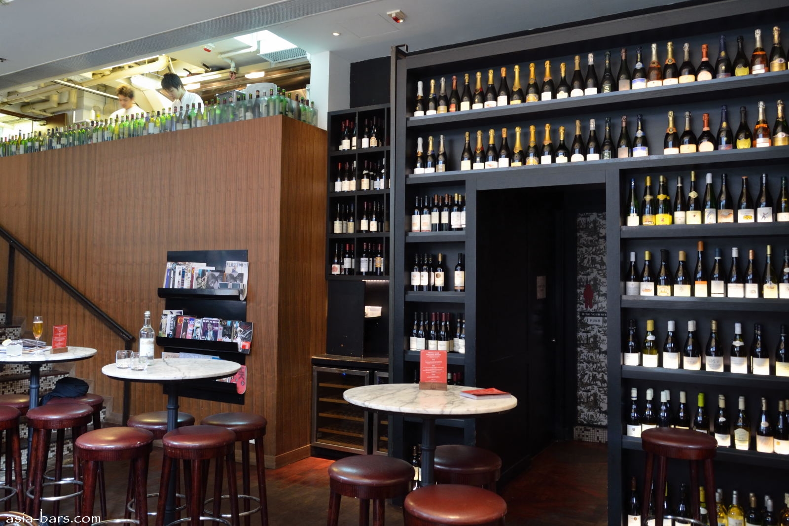The wine cellar and bar area- with open kitchen on mezzanine level