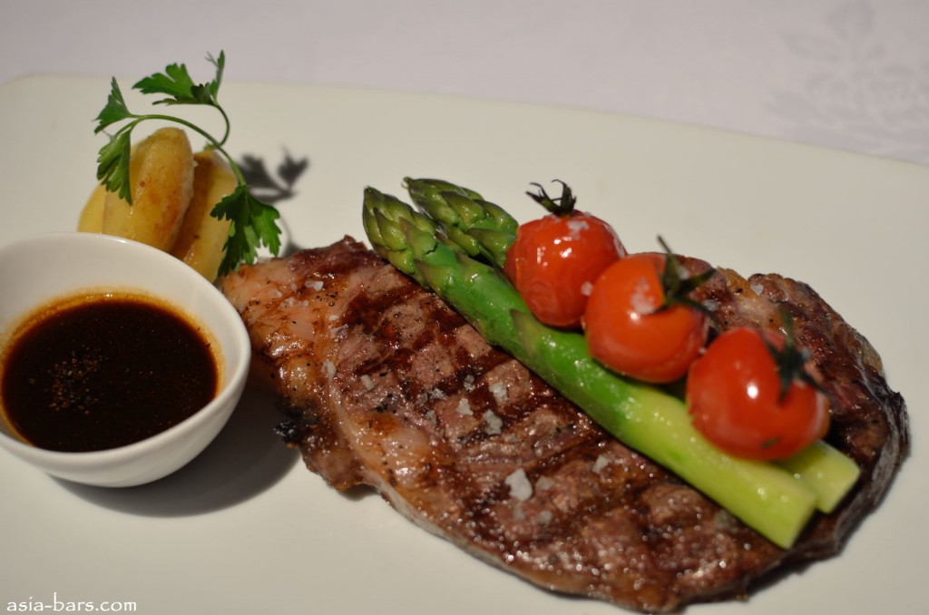 Prime Dry-aged Nebraska Rib Eye (USA)- 12 oz or 16 oz cuts. Served with fondant potato, asparagus and confit tomato
