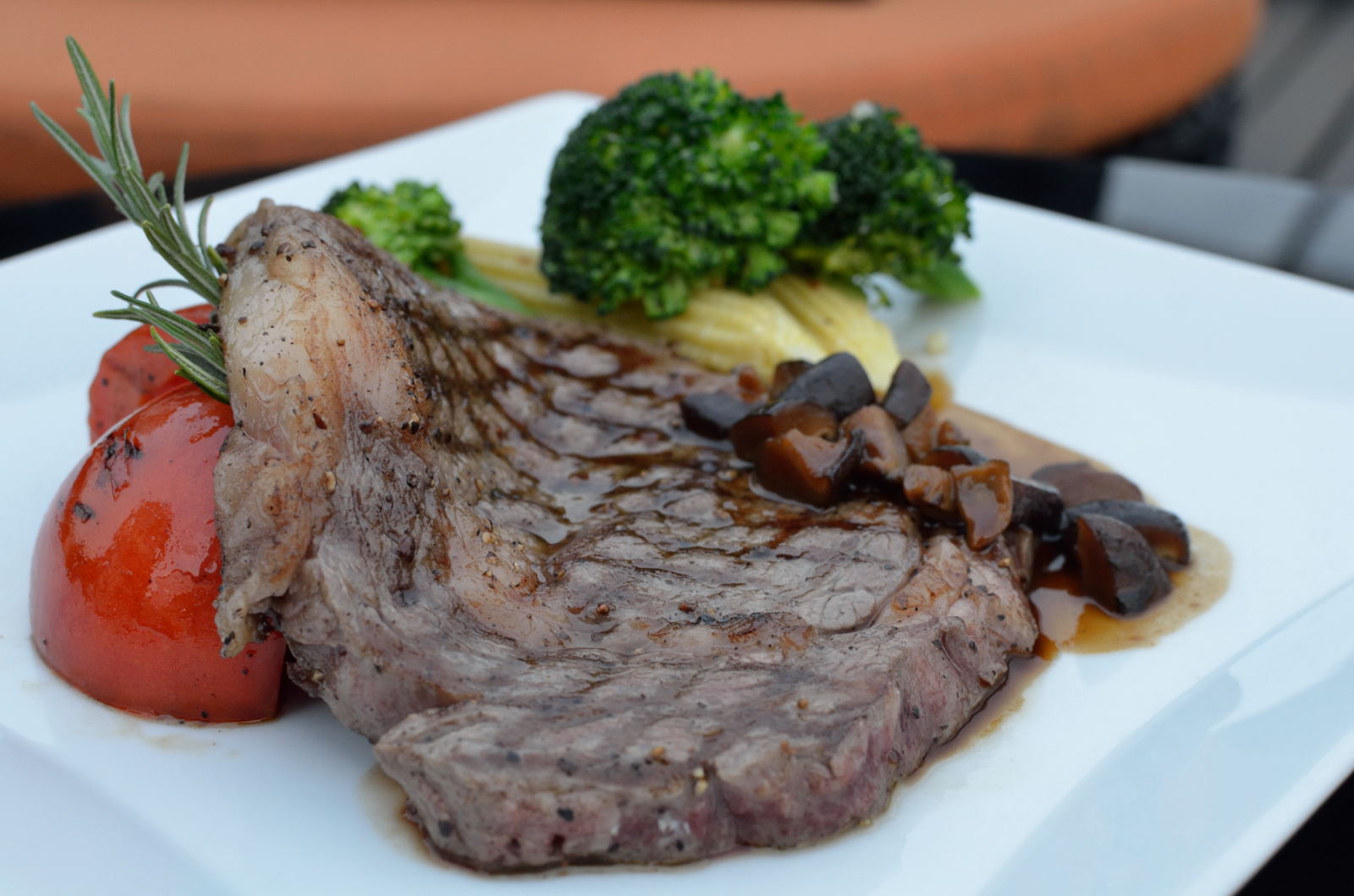US Angus Beef- Ribeye 250gm– served with mushroom sauce and sauteed vegetables (extra)