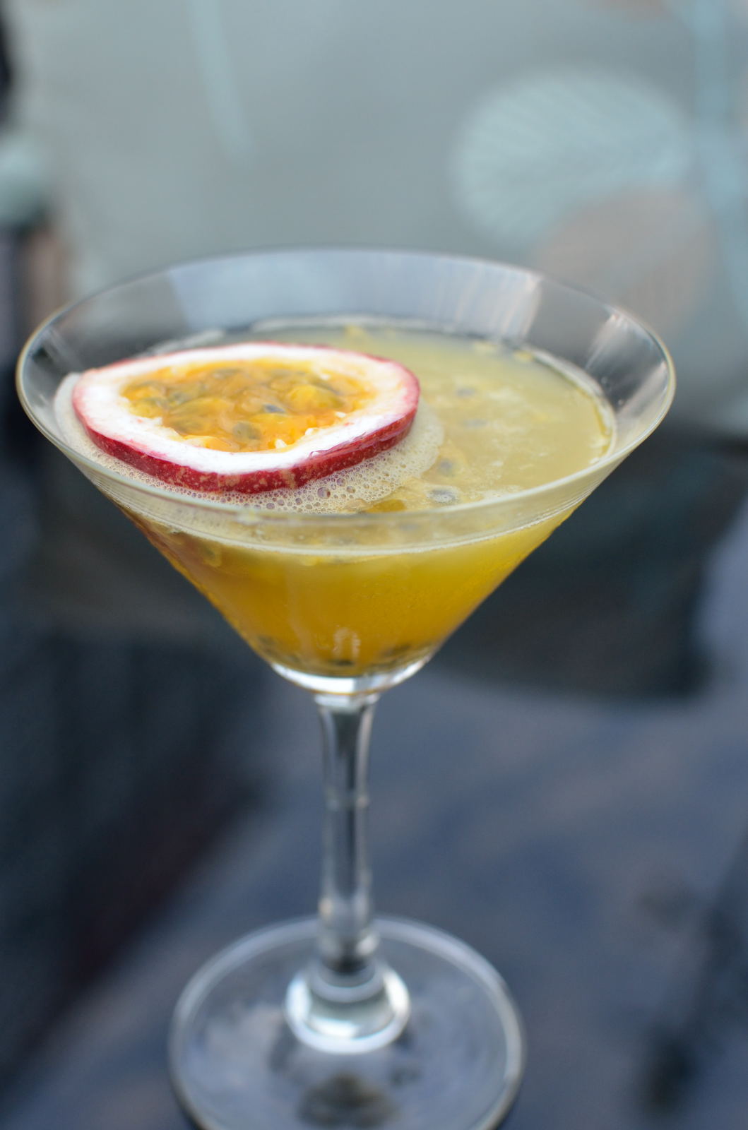 Passion Fruit Martini- Vodka, Triple sec, Passion Fruit, Passion Fruit syrup and White Sugar