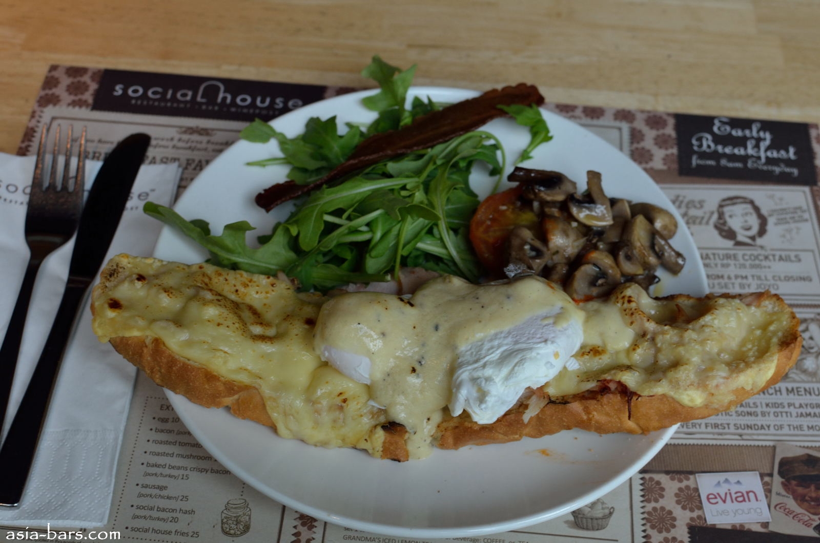 Breakfasts at SOCIAL HOUSE are a popular choice for nearby office workers- and can be ordered either as sets , or a la carte from the menu. Favourites include EGGS BENEDICT (see photo below); SEASONAL FRUIT PLATTER– a light & healthy option served with tofu and yoghurt; and “OLD TIME FAVOURITES” of two eggs, baked beans, bacon, sausage & hash.