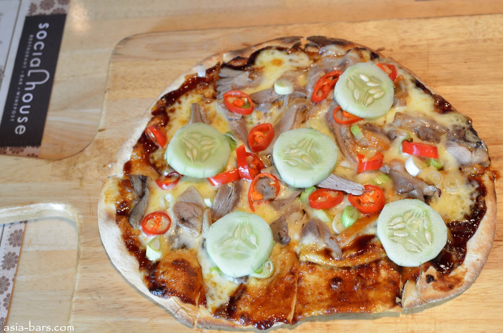 PIZZA GOURMAND- Peking Duck, green onion, cucumber, fresh chilli and hoison sauce