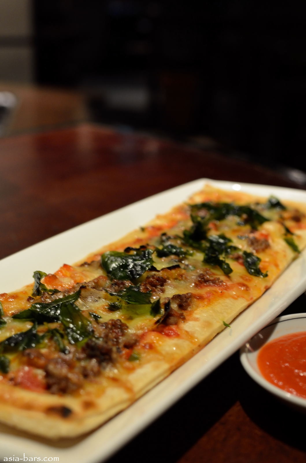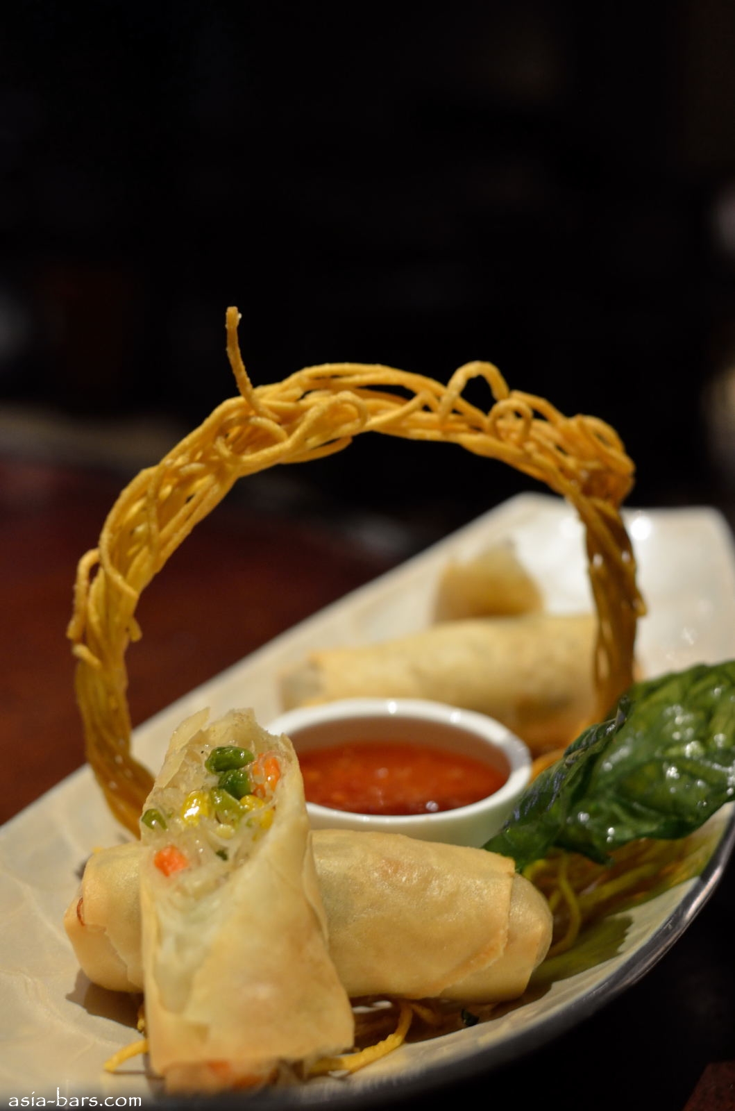 From the “Small Mighty Bites” menu- Vegetarian Spring Rolls: bamboo shoot, carrots, leeks, onions, shallots and garlic, dip sauce