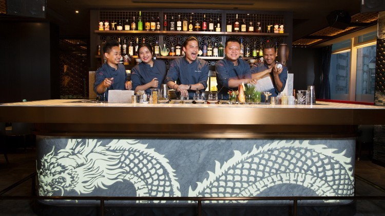 Serving staff busy behind the bar counter
