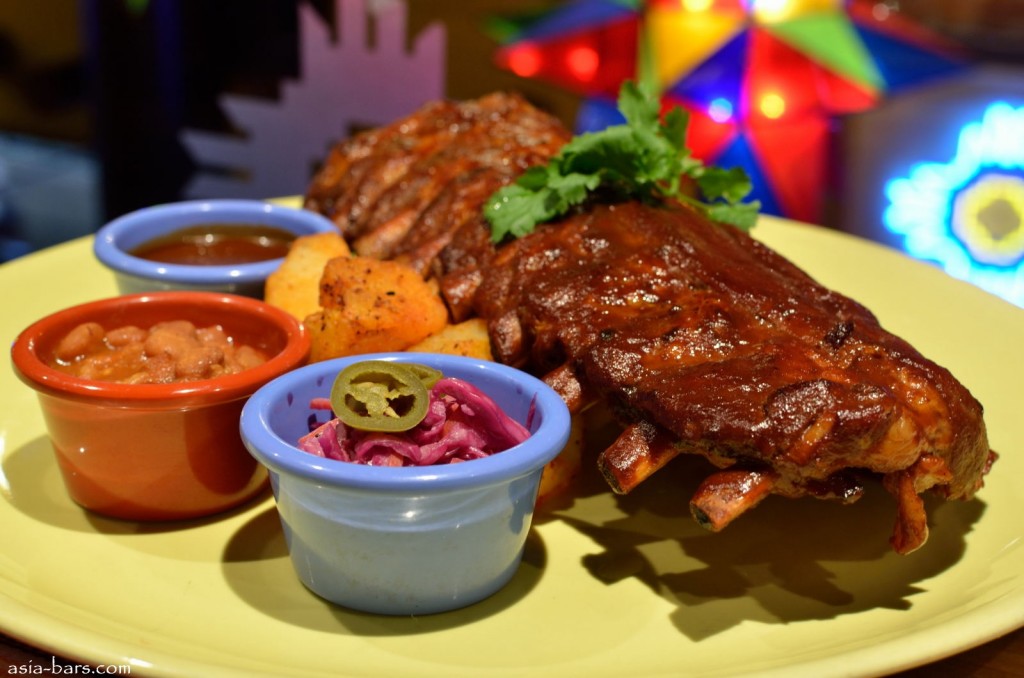 Smoked Baby Back Ribs- the Coyote Signature dish. A full slab of prime U.S. baby back pork ribs marinated with Coyote barbecue sauce, served with ancho chili potatoes, smoky beans and honey dijon slaw