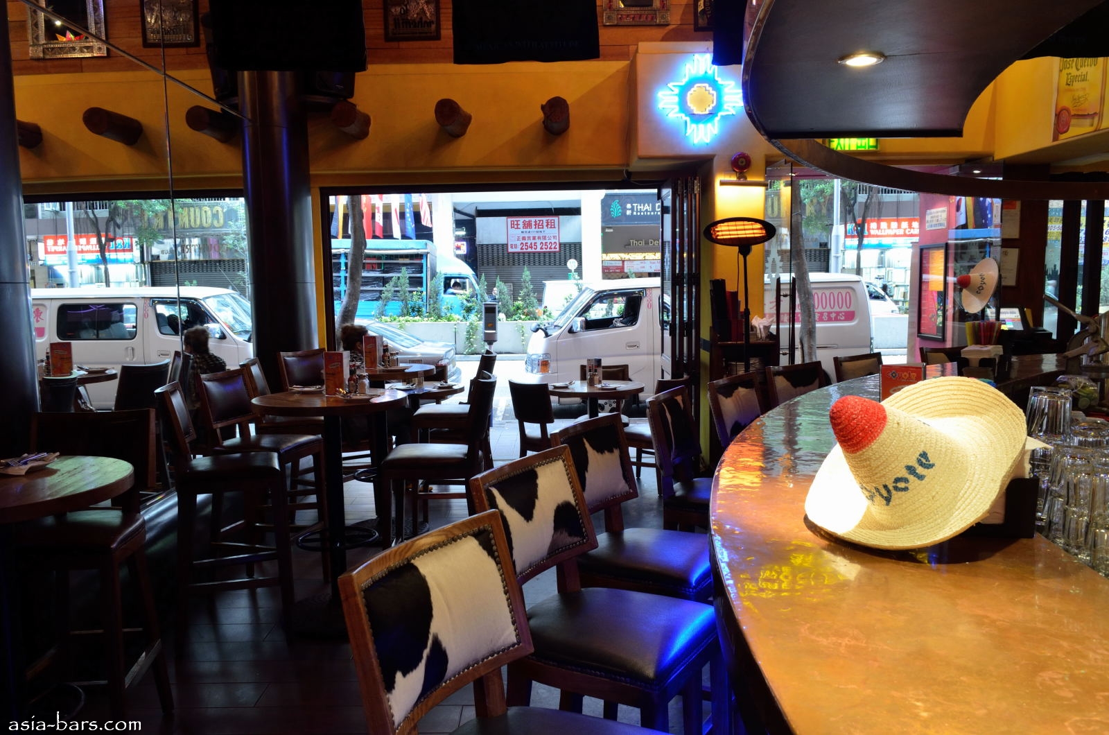 A prominent fixture in the heart of Wanchai for more than 12 years now has been Coyote Bar & Grill. With a large open frontage onto busy Lockhart Road- and with the distinctive bright pink exterior facade, and a large neon sign cantilevered out above the roadway- it is impossible to miss Coyote. The casual style restaurant and bar serves an authentic menu of Mexican dishes, with their mesquite grill a specialty. Coyote is also renowned for being the first true margarita bar in Hong Kong- and continues to lay claim as “the best”– serving a selection of over 70 varieties of margaritas, plus a large range of tequilas and mezcal. The bar exudes a friendly “party” atmosphere at night, and crowds spill over onto the outside pavement into the late hours.