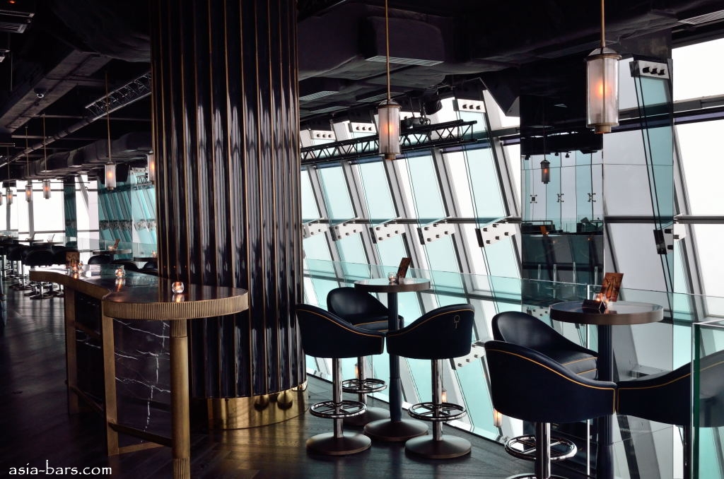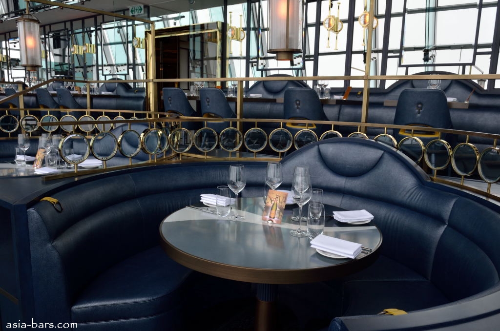 On the upper level, aqua spirit has been expanded with the provision of additional lounge seating areas, and the series of tall round “perching tables” that extend along the length of the waist-height glass wall along the front of the floor space facing out over the restaurant below.