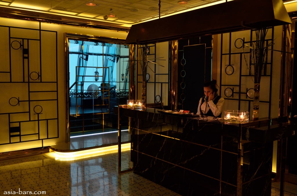 The reception area on 29th floor welcomes with a warm golden glow and luxurious brass detailing